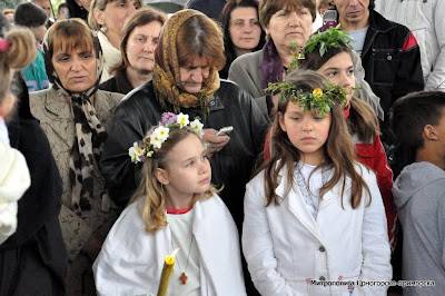 Током Литургије Митрополит Амфилохије је миропомазао дванаест новокрштених слугу Божјих.