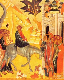 Овај долазак у свети град поздравио је народ простирући своје огртаче на пут, носећи палмове гранчице и говорећи: "Благословен онај који иде у име Господње".